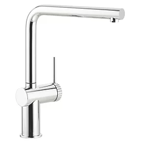 Contemporary design with a 90° angled swivel spout. Includes a cold start valve that prevents unnecessary hot water usage. Chrome finish.