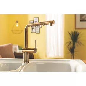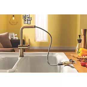Abode Fraction Pull-Out Spray Mono Mixer Kitchen Tap Antique Brass