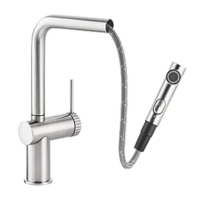 Abode Fraction Pull-Out Spray Mono Mixer Kitchen Tap Brushed Nickel