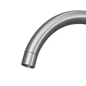 Stainless steel single-lever operated mono mixer with swivel spout. Ideal for double bowl sinks. Modern design with brushed steel finish. Ceramic disc technology.