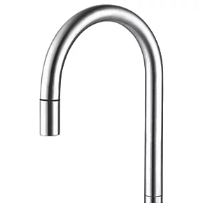 Striking, solid stainless steel mixer tap with built-in aerator and pull-out hose. Suitable for all kitchen styles.