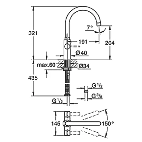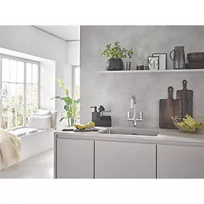 Sleek, stylish design with C-shaped spout which can be locked in place or swivel to direct water flow. Isolated internal waterways kept separate with Zero system, providing lead and nickel free drinking water. Finished with easy to clean, scratch-resistant StarLight chrome coating. Supplied with 500mm threaded tails (65mm inside tap body).