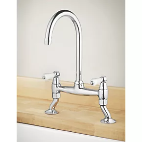 Allegro bridge deck sink mixer kitchen tap with swivel spout. Chrome-plated brass.